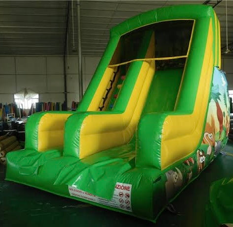 Questo coloratissimo scivolo gonfiabile, con i suoi vivaci disegni di animali e palme tropicali, è la scelta perfetta per garantire ore di puro divertimento ai nostri bambini.